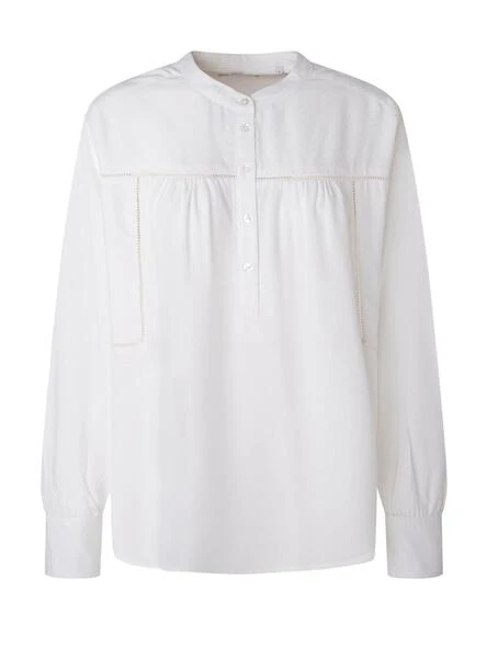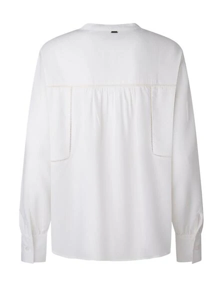 Chemisier Pepe Jeans. Modèle Clementina. Couleur blanc. Manches longues. Fermeture boutonnée sur le devant. Col mao.