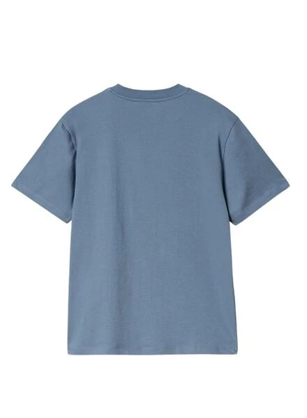 T-shirt Carhartt. Modèle Script Embroidery. Couleur bleue (Sorrent). Col rond élastique. Manches courtes. Épaules tombantes. Coupe régulière. Texte brodé sur la poitrine. Tissu en coton biologique.