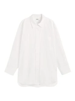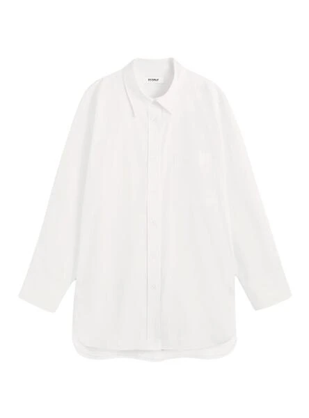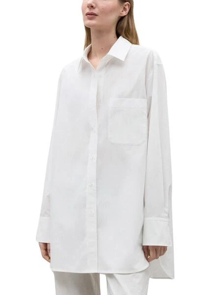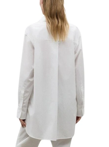 Chemise Ecoalf. Modèle Andrea. Couleur blanche. Manches longues. Fermeture à boutons. Poche poitrine. Fentes latérales en bas. Coupe ample.