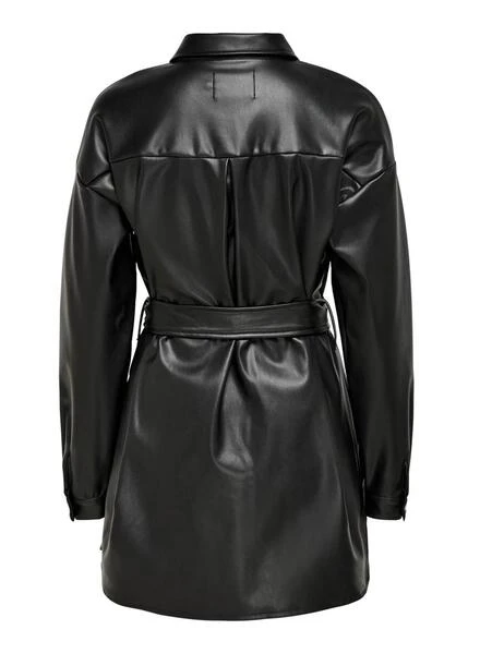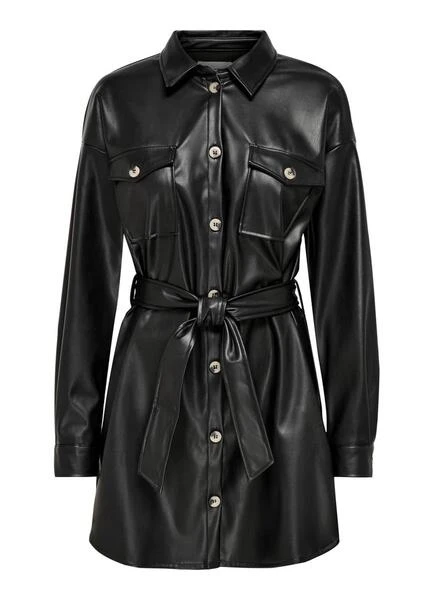 Chemise Veste Only. Fabriqué en cuir synthétique. Fermeture boutonnée sur le devant. Couleur noire. Manche longue. Poches poitrine à rabat. Noeud à la taille.