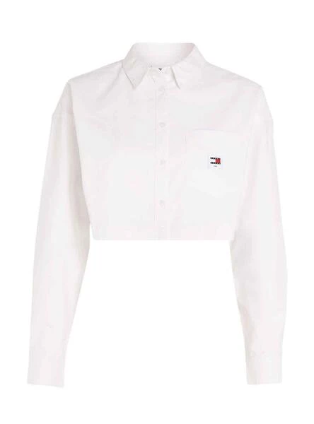 Chemise Tommy Jeans Crop Badge Blanc Pour Femme