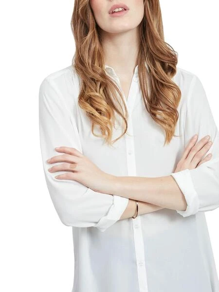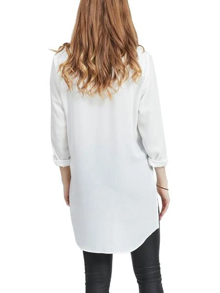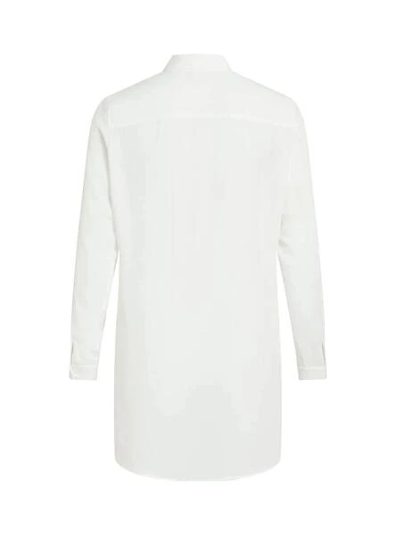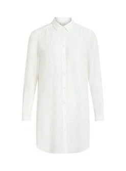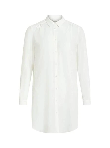 Chemise Vila. Modèle Vilucy. Couleur blanche. Fermeture boutonnée. Coupe longue. Style tunique. Regular fit Ourlet arrondi. Tissu léger. Manche longue.