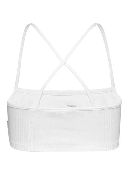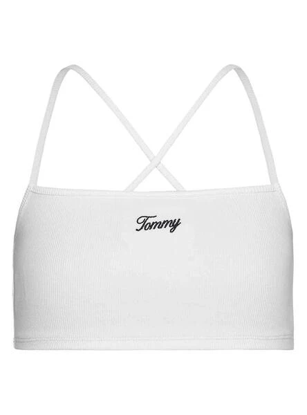 Top Tommy Jeans. Modèle Strap. Couleur blanche. Logo de la marque Ă l’avant. Bretelles croisĂ©es dans le dos.