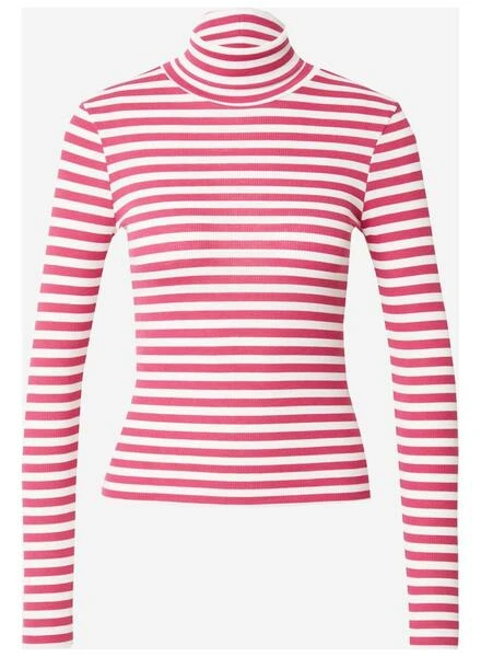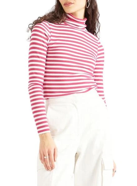 Por favor, dame la traducción al francés de Jersey Only. Modelo Elina. Color rosa. Manga larga. Cuello alto. Diseño a rayas. Regular fit.