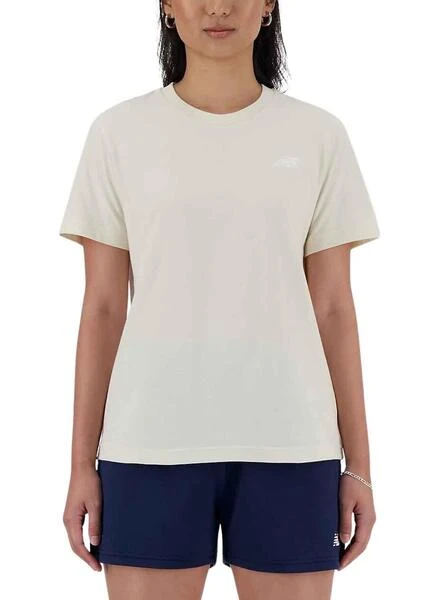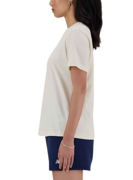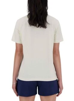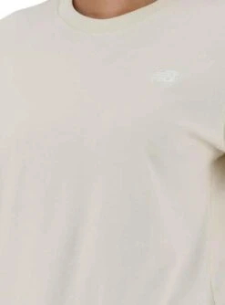 T-shirt New Balance. Modèle Sport. Couleur beige. Manches courtes. Col rond. Logo de la marque sur la poitrine. Coupe régulière.