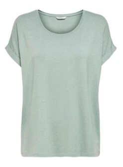 Retournez-moi seulement la traduction en français de ceci : T-shirt Only. Modèle Monster. Couleur bleu turquoise. Encolure ronde large. Manches courtes retroussées. Tissu léger. Coupe régulière.