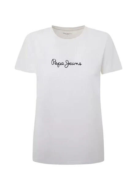 T-shirt Pepe Jeans. Manches courtes. Col rond. Logo Pepe Jeans imprimé sur la poitrine. Coupe régulière. Couleur blanche. Finition double surpiqûre aux manches et en bas.