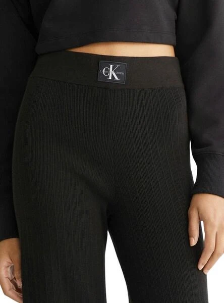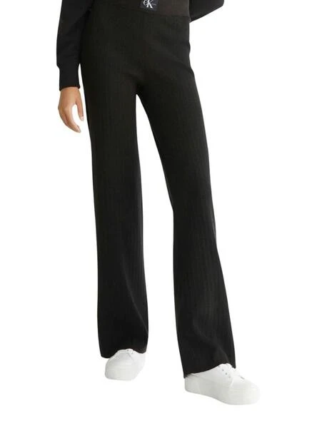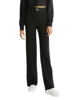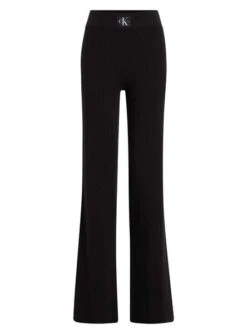 Pantalon Calvin Klein Jeans. Modèle varié. Couleur noir. Logo à la taille. Tissu côtelé et élastique. Coupe évasée.