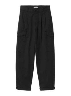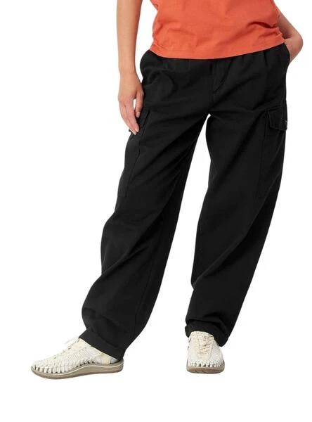 Pantalon Carhartt. Modèle Collins. Couleur noir. Côté Poches. Poches sur la jambe. Passants de ceinture pour. Fermeture boutonnée et zippée. Avec pinces à la taille. Ajustement Relaxed. Talle haut. Teint en pièce. Logo au dos.