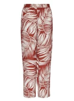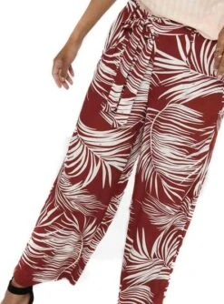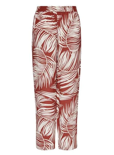 Pantalon Only. Modèle Augustina. Bordeaux. high rise. Deux poches latérales. Ceinture ajustable. Longueur à la cheville. Coupe droite. Imprimé tropical.