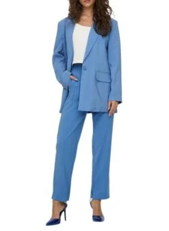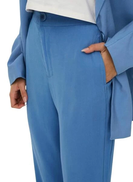 Pantalon Only. Modèle Aris. Couleur bleu. 4 poches. Fermeture boutonnée et zippée.