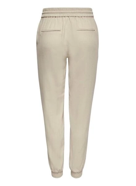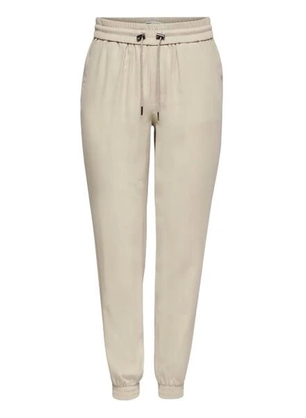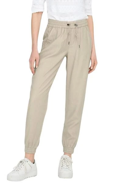 Pantalon Only. Modèle Kelda. Couleur beige. 4 poches. Taille élastique ajustable avec cordon. Coupe régulière.
