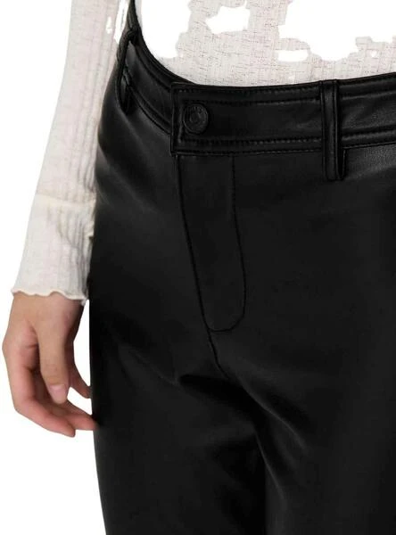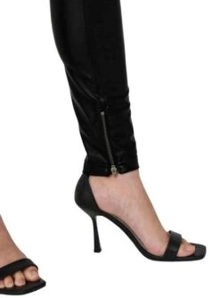Pantalon Only. Modèle Lena Star Couleur noir brillant. Fermeture boutonnée et zippée. Passants de ceinture pour. Coupe ajustée. mid rise. Ourlet réglable avec fermeture éclair. Tissu façon similicuir.