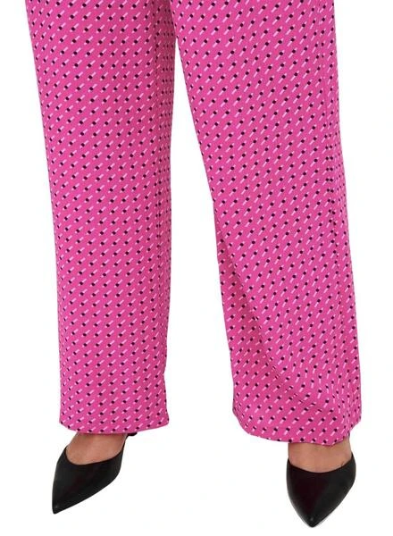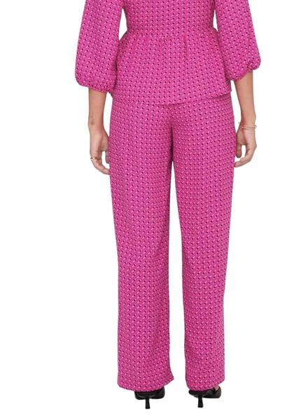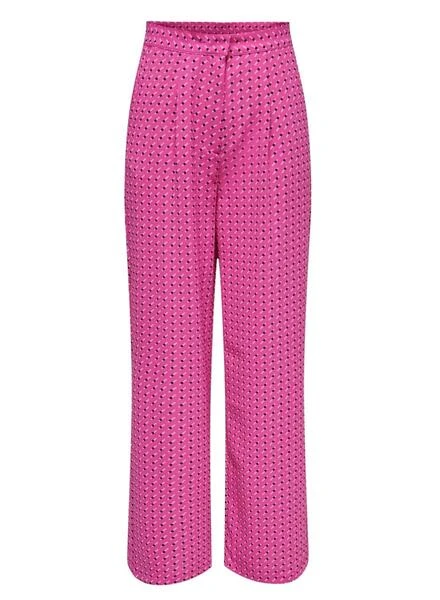 Pantalon Only. Modèle Noémie. Imprimé rose Couleur. Pinces à la taille. Fermeture boutonnée et zippée. Tissu léger. Jambe droite. Côté Poches.