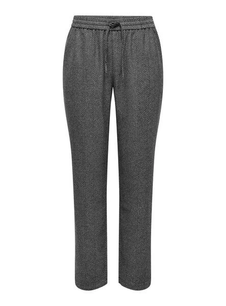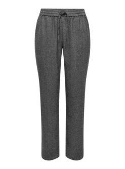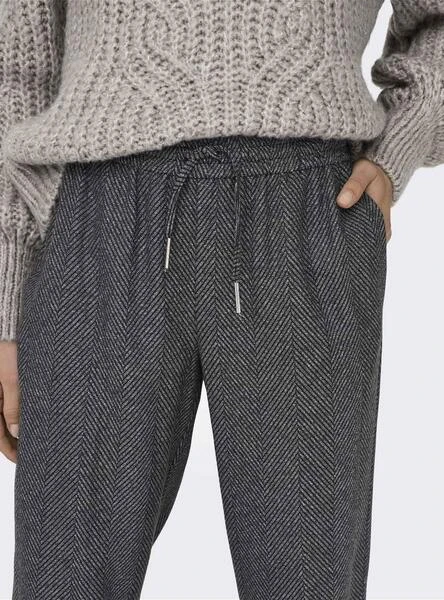 Pantalon Only. Modèle Shay. Couleur gris. Tissu à chevrons marbré. Taille élastique avec cordon de serrage. Style jogger. Longueur de la cheville. Côté Poches.