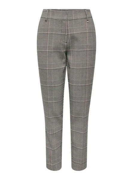 Pantalon Only. Modèle Veronica Iris. Couleur Gris. Printed à carreaux. Passants de ceinture pour. Fermoir et fermeture éclair. Poches au dos.