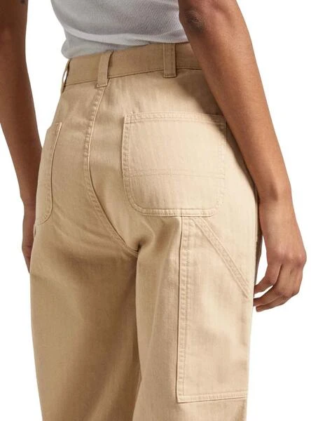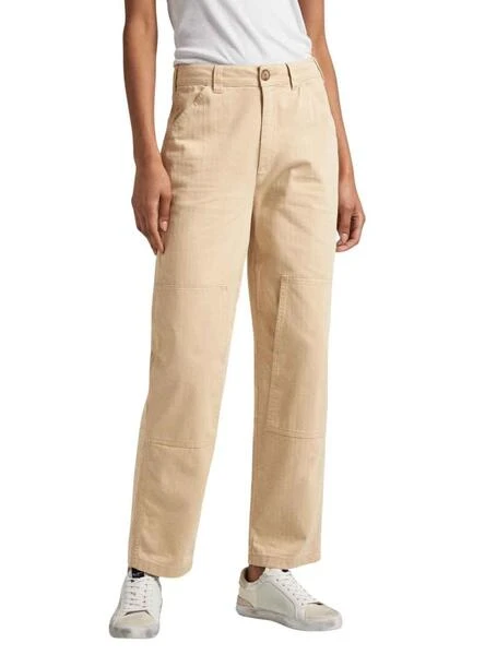 Pantalon Pepe Jeans. Couleur beige. 5 poches. Fermeture boutonnée et zippée. High rise. Jambe droite. Détail patch carré sur les genoux. Patch latéral Poche. Patch arrière du Poches. Tissu élastique et flexible. Style ouvrier.