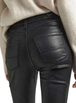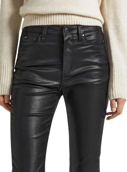Pantalon Pepe Jeans. Modèle Dion Flare. Couleur noir. Passants de ceinture pour. High rise. Coupe évasée. 5 Poche. Tissu denim extensible. Patch logo sur la taille.