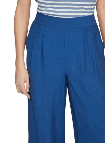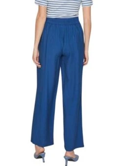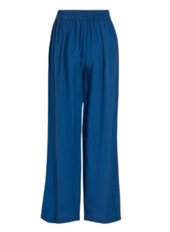 Pantalon Vila. Modèle Jana. Couleur bleue. 2 poches. Taille élastique. Tissu léger. Taille haute. Coupe ample.