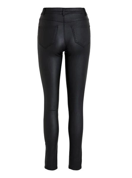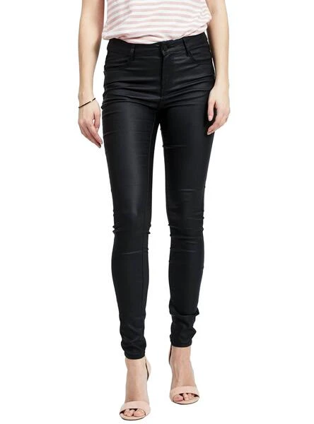 Pantalons Vila. modèle Vicommit. Couleur noir. Cirée. mid rise. 4 poches. Skinny. zipper Bon. Très élastique. Le modèle porte la taille S.