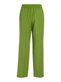 Pantalon Vila. Modèle Winnie. Couleur verte. Taille haute. Coupe ample. Poches latérales. Bande élastique à la taille. Coupe droite.