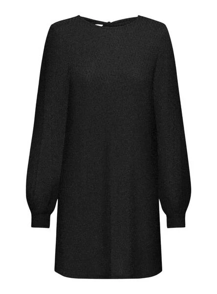 Robe Only. Modèle Carol. Tissé avec du fil lurex. Effet pailleté. Couleur noir. Décolleté dos avec noeud. Coupe mini. Manche longue. Élastique.