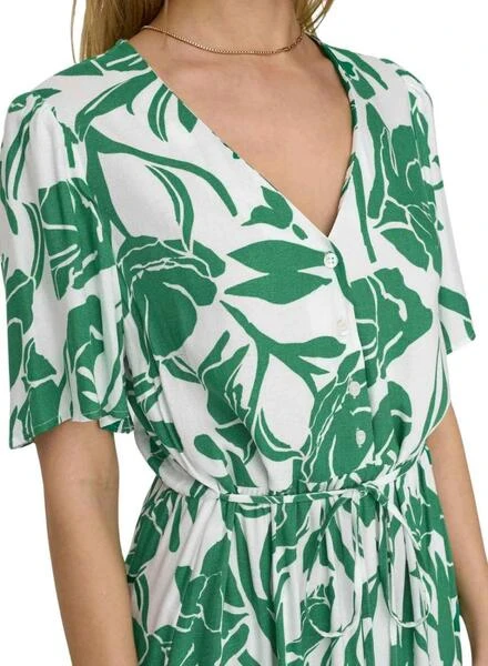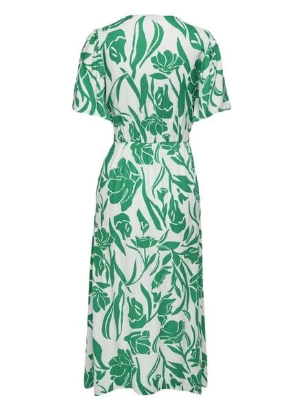 Robe Only. Modèle Halia. Couleur blanche. Manches courtes. Fermeture avec des boutons et une ceinture. Imprimé floral. Col en V. Longueur midi.