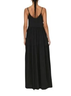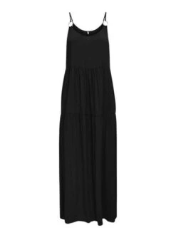 Robe Only. Modèle Sandie. Couleur noire. Col en U. Sans manches. Bretelles avec pièce métallique. Ajustement ample. Longueur maxi.