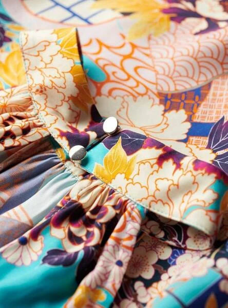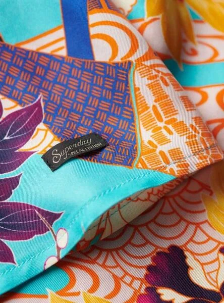 Robe Superdry. Modèle Aqua. Multicolore. Col en v. Coupe mini. Décolleté dans le dos. Imprimé oriental. Tissu léger.