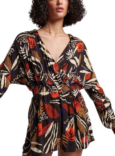 Robe Superdry. Modèle Beach. Couleur noir. Manche longue. Deux poches latérales. Doublure du short. 2 poches latérales. Intégrale Printed.
