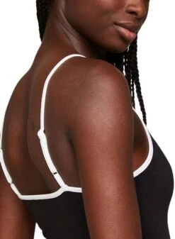 Robe Tommy Jeans. Modèle Tonal Script. Couleur noire avec des détails contrastés. Logo sur la poitrine. Avec bretelles. Ajusté au corps. Robe longue au-dessus des chevilles. Coupe latérale. Le modèle porte la taille S.