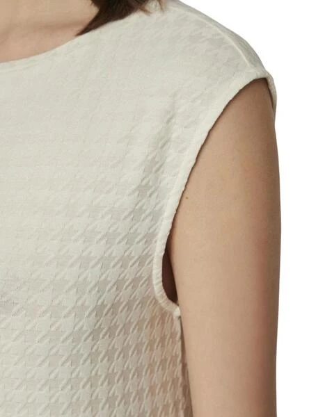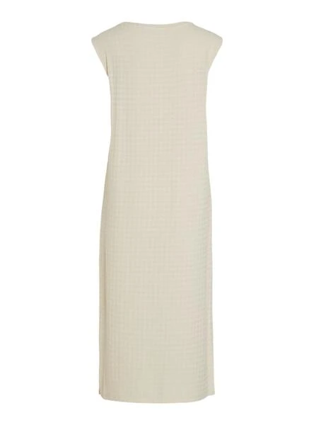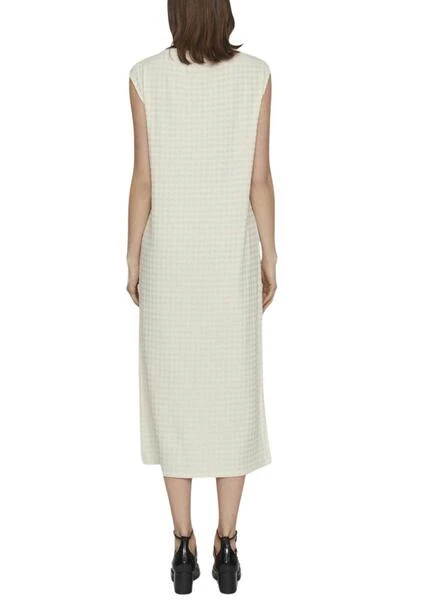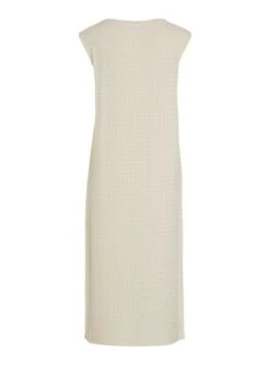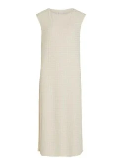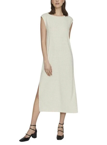 Robe Vila. Modèle Brenda. Couleur beige. Sans manches. Col bateau. Ouvertures latérales. Coupe régulière.