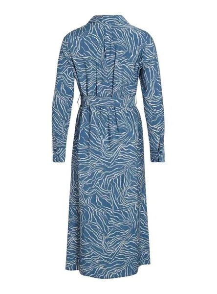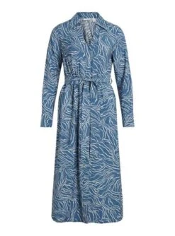 Robe Vila. Modèle Dogma. Couleur bleue. Manches longues. Col en V. Avec ceinture. Longueur 7/8.
