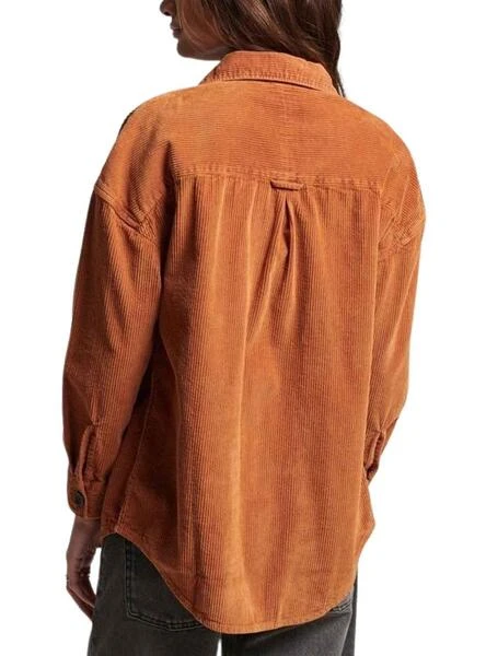 Surchemise Superdry. Modèle Chunky. Couleur marron. Manche longue. Fermeture boutonnée. Poche sur la poitrine. Ample.