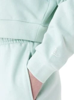 Sweat à capuche New Era. Modèle Crop Neck LA Dodgers. Couleur verte. Logo brodé sur la poitrine. Épaules tombantes. Tissu en coton et polyester. Le mannequin porte la taille S. Couleur verte.