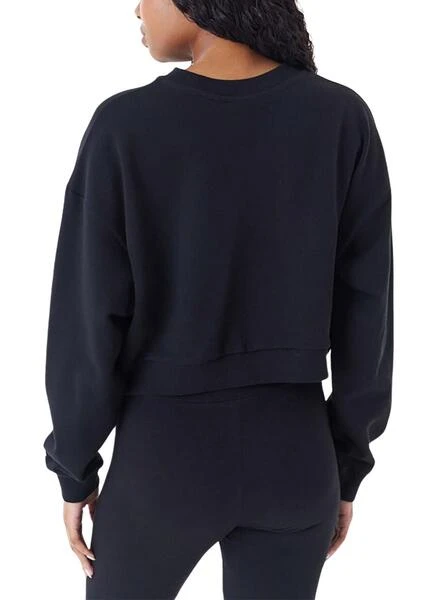 Sweat-shirt New Era. Modèle Crop New York Yankees MLB. Couleur noire. Logo brodé sur la poitrine et le poignet. Extrémités élastiques. Sweat-court. Épaules tombantes. Le modèle porte la taille S.