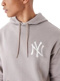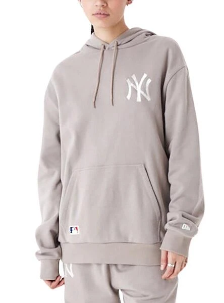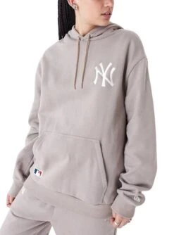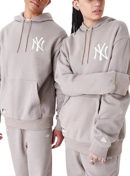 Sweat à capuche New Era. Modèle New York Yankees League. Couleur marron clair. Coupe oversize. Épaules tombantes. Tissu en coton et polyester. Avec capuche ajustable. Poche style kangourou. Les modèles portent la taille M.