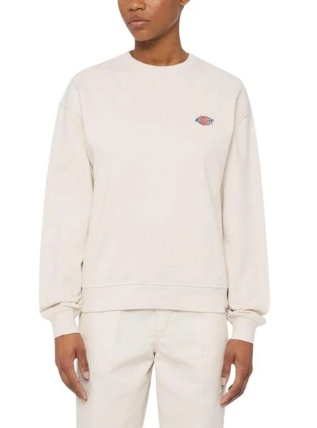 Sweat-shirt Dickies. Modèle Millerburg. Couleur beige. Manches longues. Col rond élastique. Extrémités élastiques. Tissu en French Terry de coton. Coupe ample. Logo sur la poitrine. Étiquette en patch.
