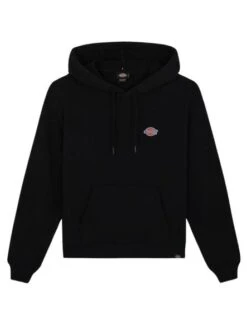 Sweat à capuche Dickies. Modèle Millerburg Hoodie. Couleur noire. Capuche réglable. Poignets et ourlet élastiques. Tissu en French Terry. Coupe ample. Poches kangourou. Étiquette Dickies sur la poitrine.