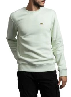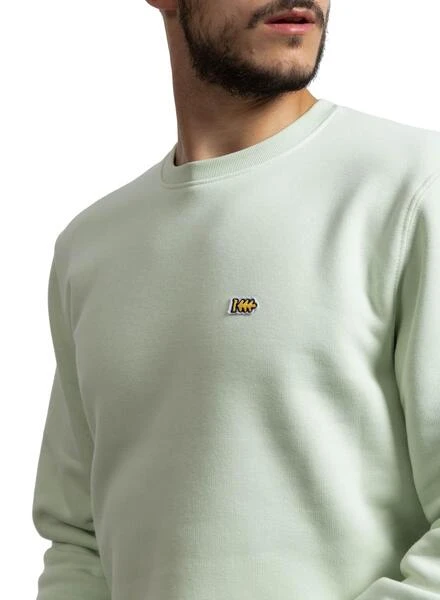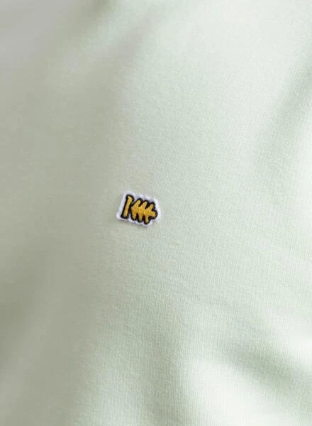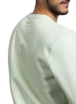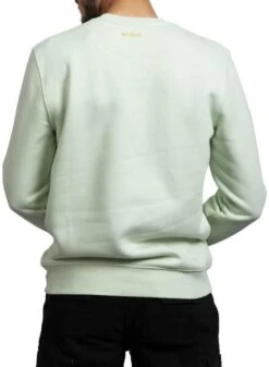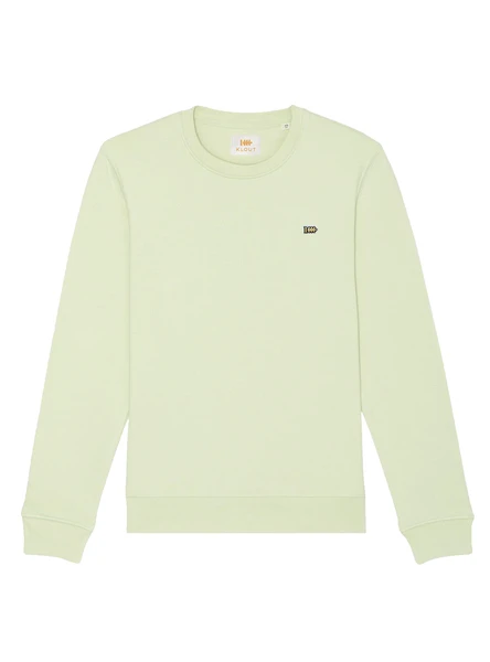 Sweat Klout. Modèle Basic. Couleur vert clair. Logo imprimé sur la poitrine. Col rond. Poignets, col et ourlet côtelés. Regular fit Fabriqué en coton biologique. Le mannequin porte une taille M.