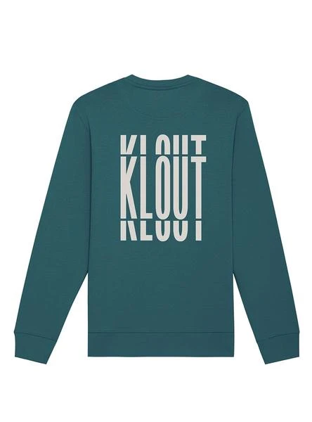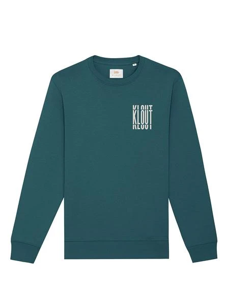 Sweat Klout. Modèle Impact Petrol. Couleur bleu pétrole. Col rond. Illustration imprimée sur le avant et au dos. Détails taupe. Regular fit Manche court. Sans sexe. Tissu durable.