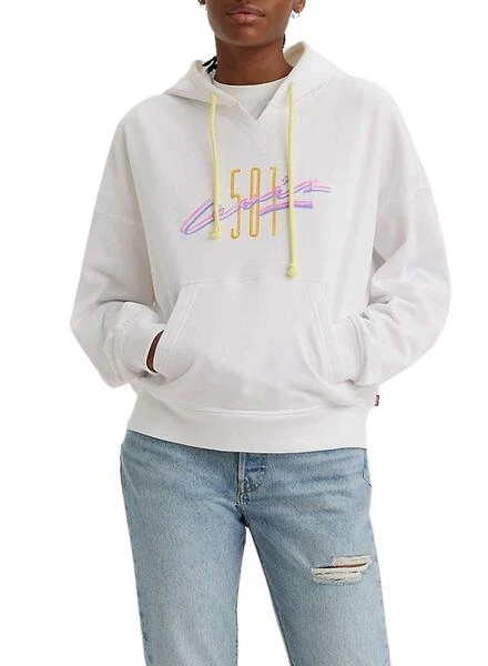 Sweat Levis. Maquette Graphic. Couleur blanc. Manche longue. Kangourou Poche. Capuche réglable avec cordon de serrage. Printed sur la poitrine. coupe décontractée