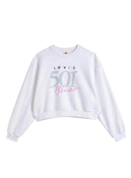 Sweat Levis. Couleur blanche. Modèle Graphic Vintage Crew 501. Imprimé 501 oversize sur la poitrine. Finitions côtelées. Sans capuche. Avec col rond. Ourlet côtelé.
