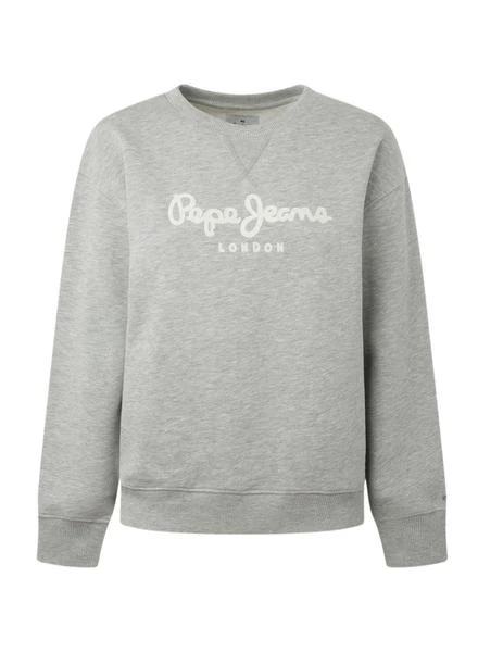 Sweat Pepe Jeans. Modèle Nanette. Gris. Manche longue. Col rond. Extrémités côtelées. Logo contrastant sur la poitrine.