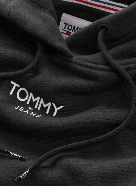 Sweat Tommy Jeans. Couleur noir. Logo imprimé sur la poitrine. Capuche réglable avec des lacets. Format de recadrage. Épaules détendues. Patch avec le logo de la marque sur une manche.