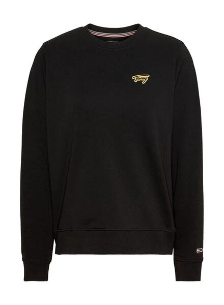Sweat Tommy Jeans. Couleur noir. Manche longue. Col rond. Broderie de la marque Logo sur la poitrine. Patch de la marque sur une manche. Finitions côtelées.