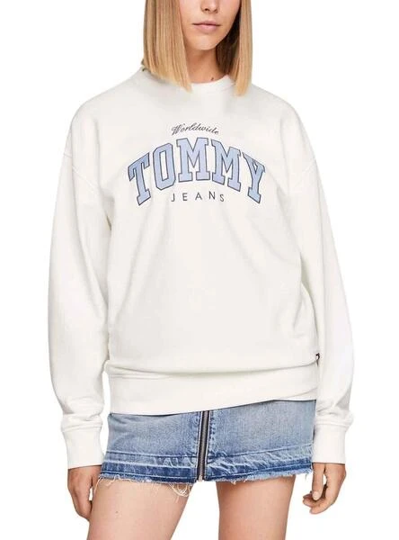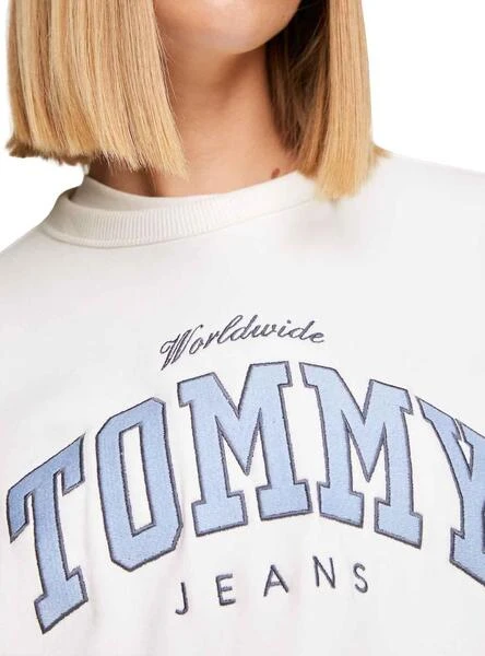 Sweat Tommy Jeans Varsity Luxe Blanc Femme
