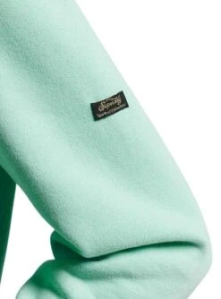 Sweat Superdry. Couleur vert. Avec capuche réglable avec cordons de serrage. Terminaisons rainurées. Logo pailleté Superdry sur la poitrine. Etiquette avec le logo de la marque sur le bras. format régulier. Kangourou Poche. Le mannequin porte une taille S.