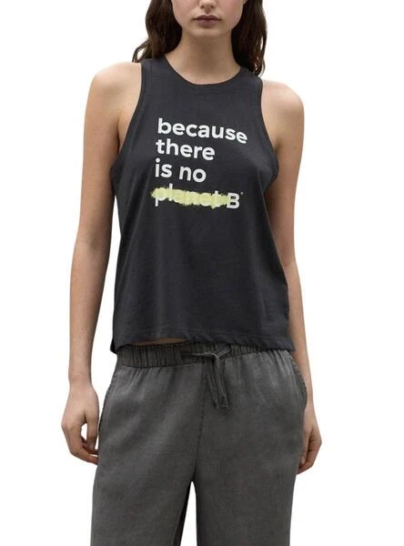 T-shirt Ecoalf. Modèle Souligné. Coupe régulière. Sans manches. Graphique imprimé sur la poitrine. Col rond. Couleur gris foncé. Produit végétalien.