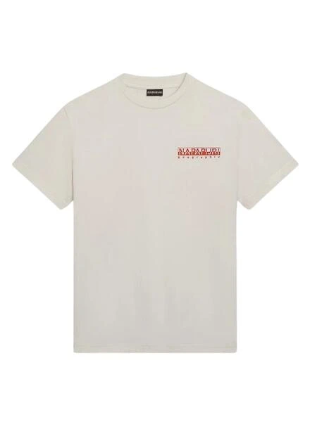 T-shirt Napapijri. Modèle Gouin. Couleur blanche. Manches courtes. Épaules tombantes. Logo imprimé sur la poitrine. Imprimé carré dans le dos. Coupe ample. Col rond élastique.